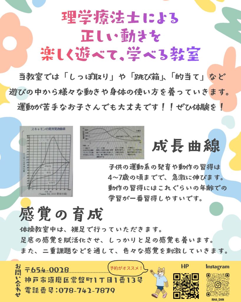 - 服装:動きやすい服装でお越しください