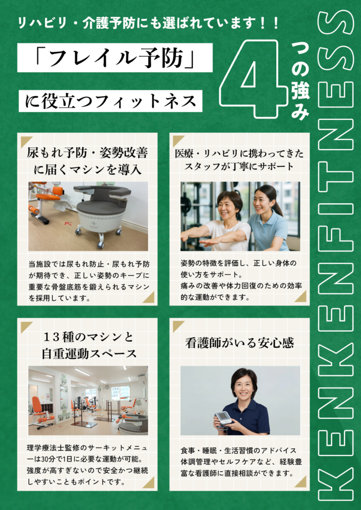 けんけんフィットネスでは、理学療法士監修のメニューで、無理なく楽しく運動を続けられます。